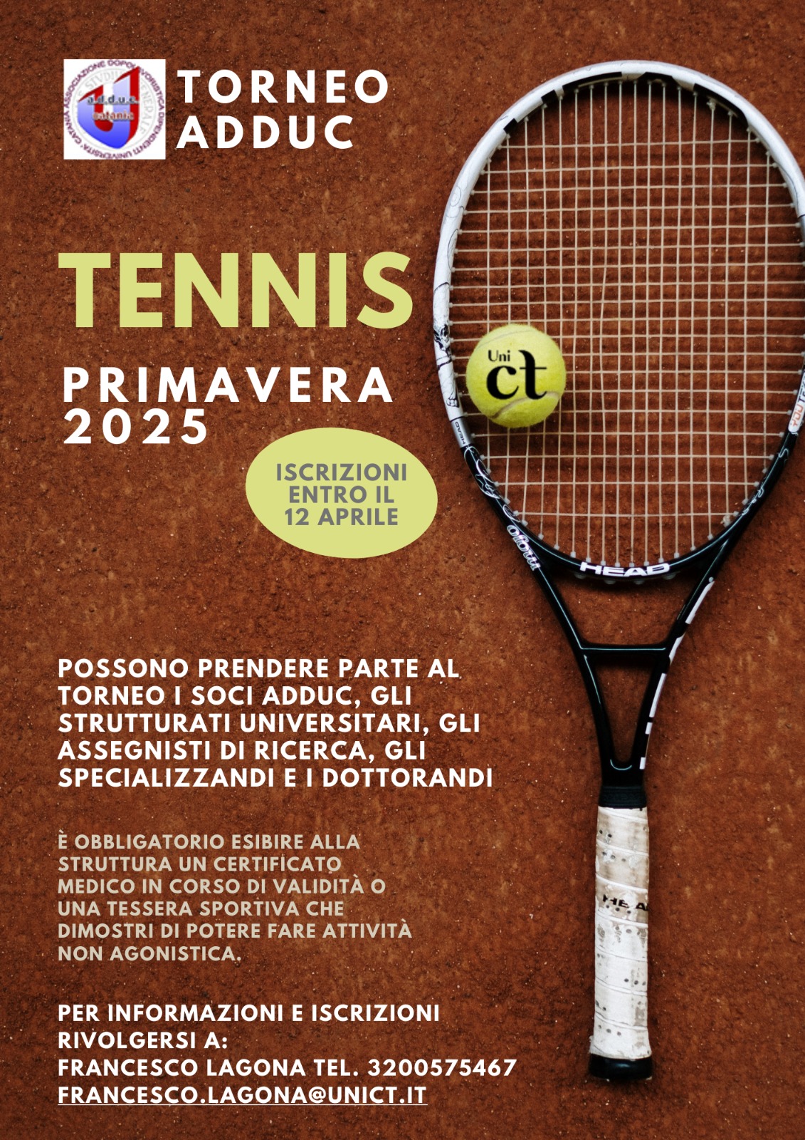 Torneo di Tennis Adduc - 2025 Torneo Primavera - Estate 2025 Per saperne di più su Torneo di Tennis Adduc - 2025